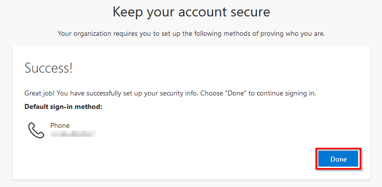 - You will now see a screen that shows your phone has been set up successfully. Select Done to finish.